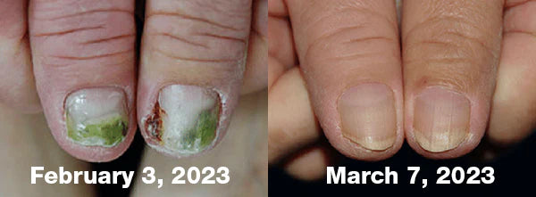 „Po mnoho let jsem navštěvovala několik lékařů kvůli paronychii na obou prstech na nohou a pokaždé mi byla stanovena nová diagnóza a zahájena léčba – ale tyto drahé léčebné postupy byly neúčinné. Nyní používám roztok Furzero™ Bee Venom Nail Fungus Treatment Solution. Je velmi snadno použitelný a zdá se, že odstraňuje paronychii a zároveň zlepšuje stav mých nehtů. Je to jedna z mála léčebných metod, která alespoň částečně zlepšila vzhled paronychie. Moje nehty teď vypadají mnohem lépe. Děkuji za toto sérum!“